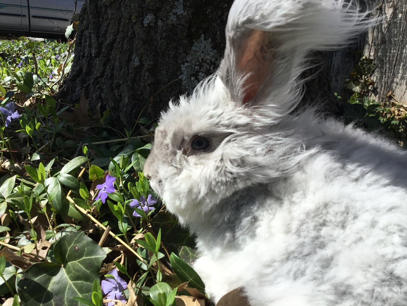 The wool of the English Angora is obtained by shearing. Contrary to some beliefs, this is not a tortuous ordeal; it’s the same as a haircut. The rabbits are calm and easy to handle and it does not hurt the animal to be sheared. Some breeds of Angoras shed their coats by plucking or combing to remove long fibers as the new fibers are growing in. This does not hurt the animals either and they become used to wool maintenance and bonding with their humans.