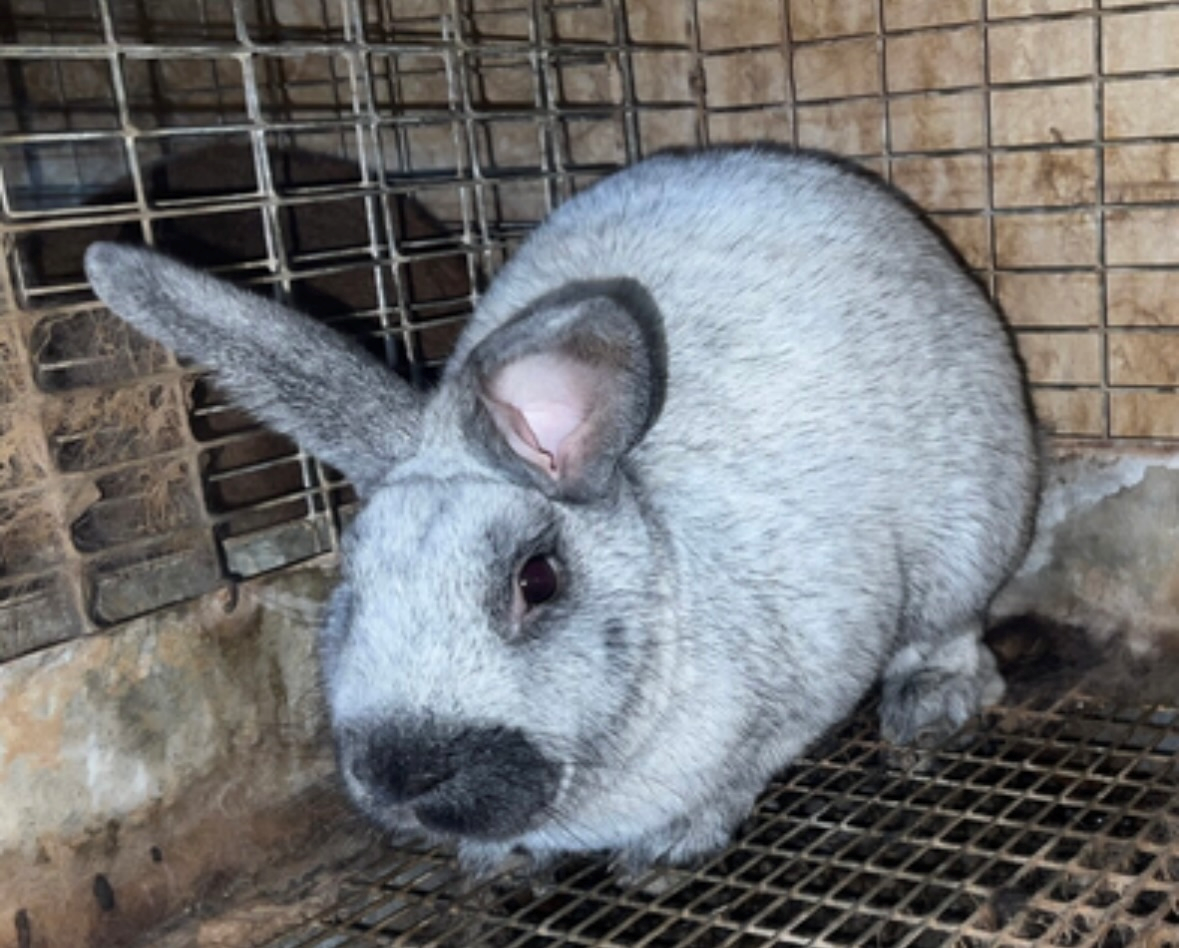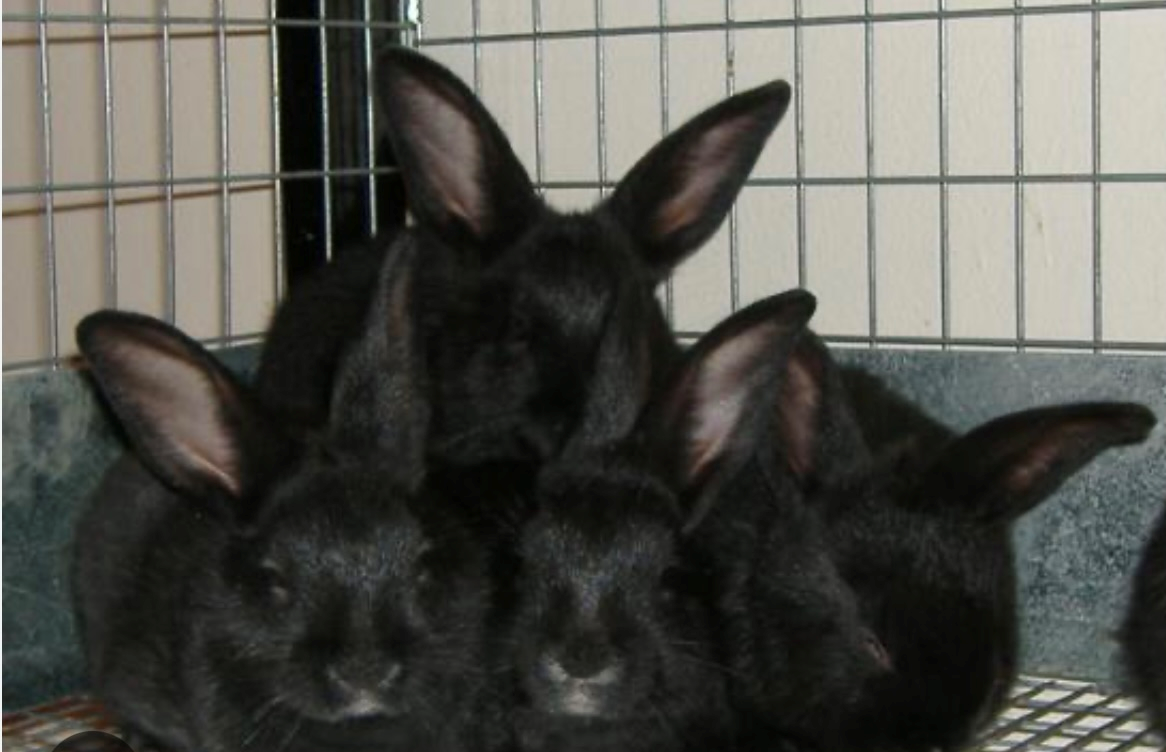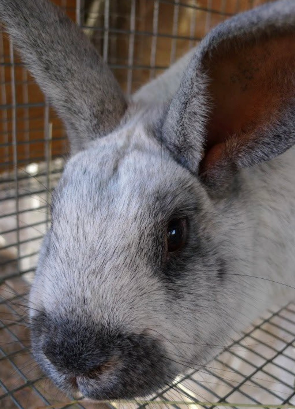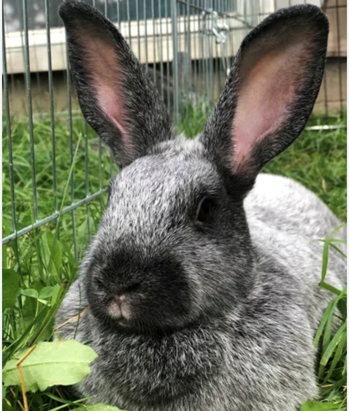 The Champagne d’Argent rabbits are a French heritage breed raised primarily for meat and pelts/fur. They have calm temperaments and are good mothers with litters of 6-8 kits. The kits are born black, grow fast and change color to a silvery blue as adults. They make good pets, are smart, are easy to care for and are often seen on the show tables. Several restrictions apply when buying a meat rabbit for consumption.