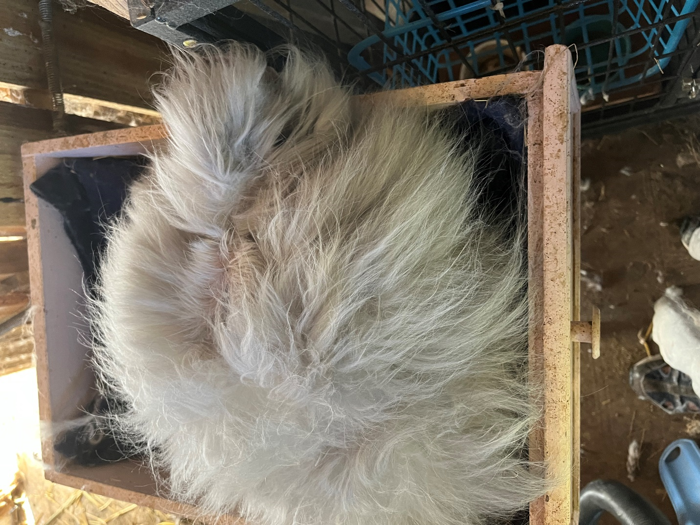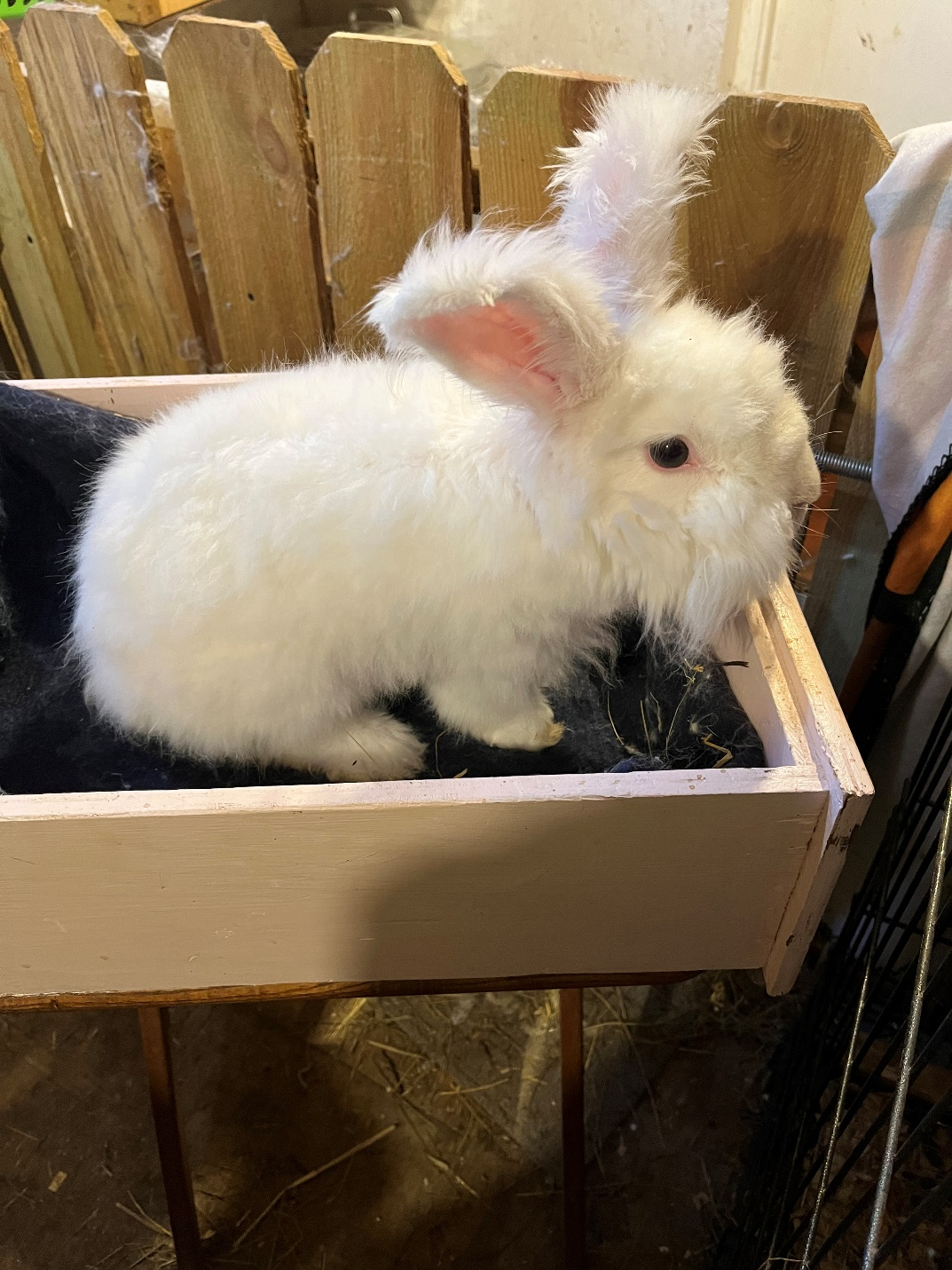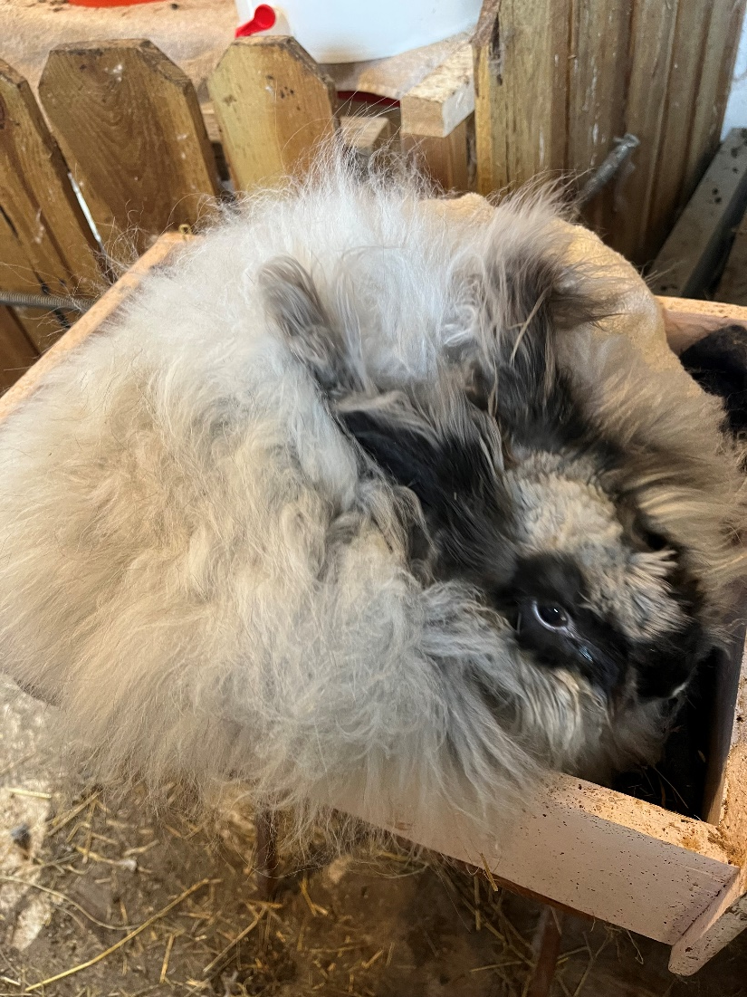 The English Angora rabbit is known for its very long, very soft wool, but they are a small, delicate rabbit that does require a lot of care to maintain their wool. Combing, brushing and/or blowing out the wool weekly or more often may be more challenging and time consuming but is required to prevent matting. The shearing is done 3-4 times a year as their wool grows fast. They also have special dietary requirements for healthy wool growth and gut health.