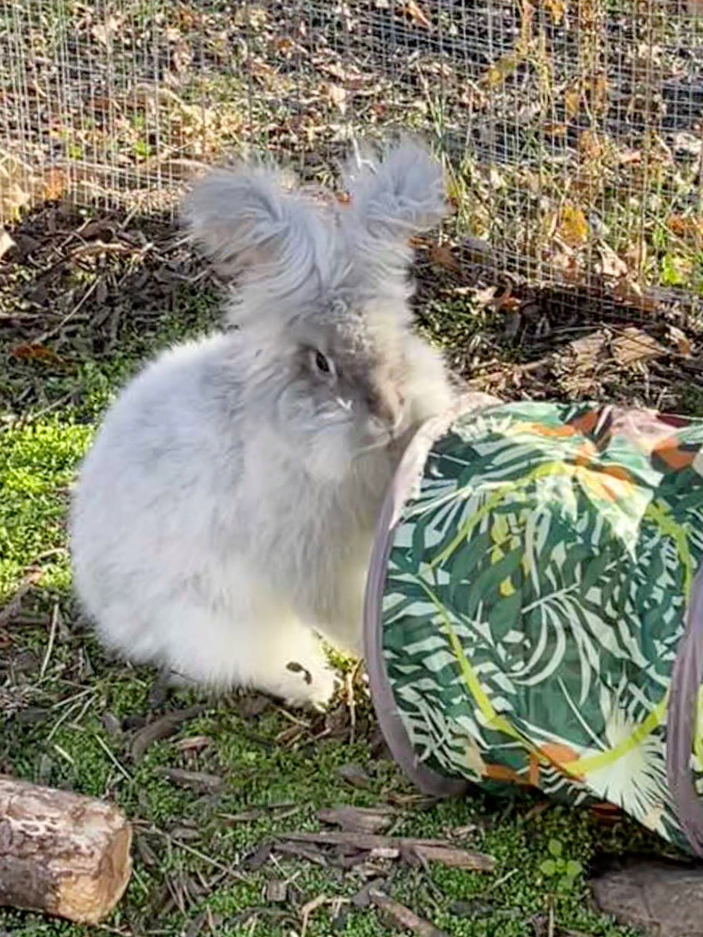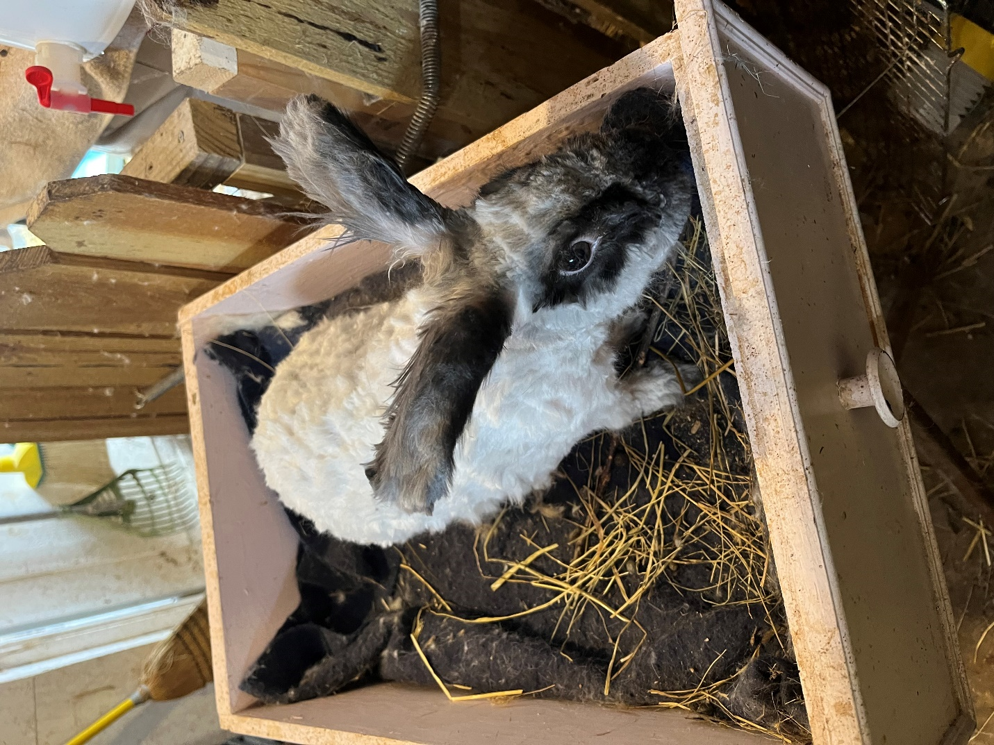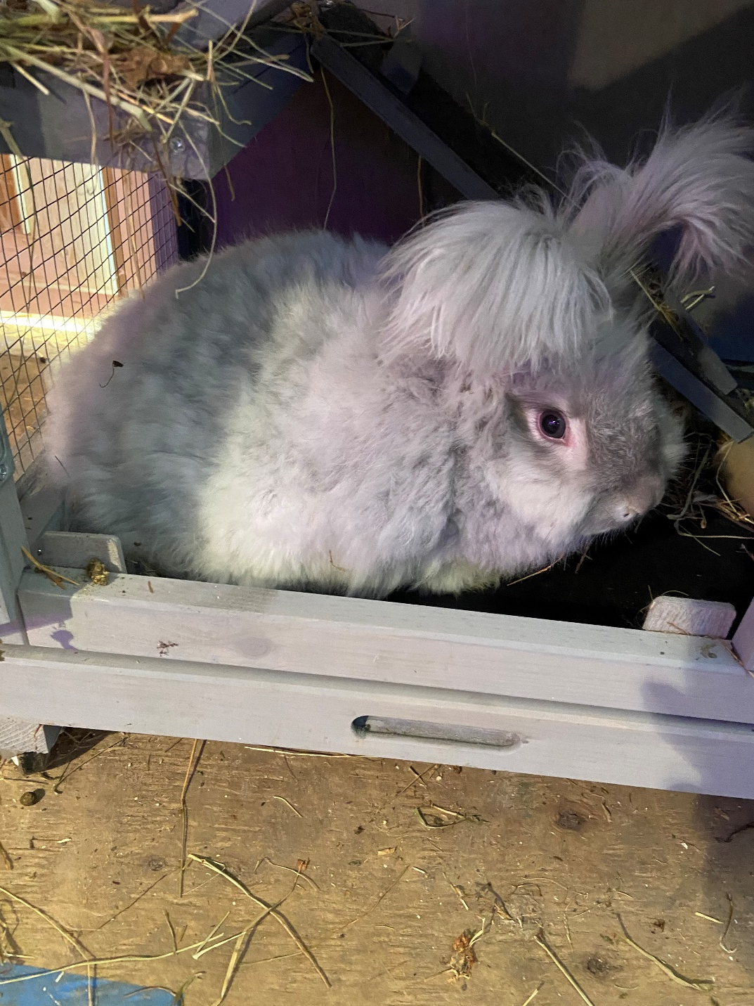 The English Angora rabbit is known for its very long, very soft wool, but they are a small, delicate rabbit that does require a lot of care to maintain their wool. Combing, brushing and/or blowing out the wool weekly or more often may be more challenging and time consuming but is required to prevent matting. The shearing is done 3-4 times a year as their wool grows fast. They also have special dietary requirements for healthy wool growth and gut health.